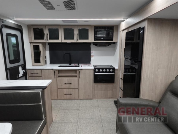 Treat yourself to a weekend of fun in this Imagine XLS travel trailer! Whether it's just you and your spouse, or you've chosen to bring along a group of friends, this trailer will meet the need. The front bedroom can sleep two people on the walk-around queen-size bed. The bedroom is quite functional because it not only contains the second exterior entry door, but it also has a private entrance into the walk-through bathroom since it is located on the other side of the bathroom. The booth dinette is functional too because it can transform from a dining location into a sleeping location, and the theater seating is directly across from the LED TV for easy viewing.