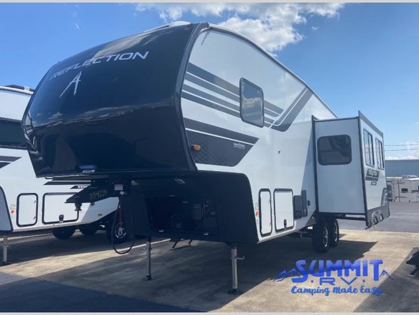 Each Reflection 100 Series fifth wheel by Grand Design is affordable and packed with luxury for unforgettable camping memories! The MorRyde CRE3000 suspension system and Goodyear Endurance tires will provide smooth towing from home to campground. And the solar package with a 180W solar panel, 60 Amp charge controller and 12V refrigerator will allow you to camp for longer periods of time and in more locations! A heated and enclosed underbelly with circulating heat is included in the Arctic 4-Seasons Protection Package, along with a double insulated roof and front cap, and thermofoil insulation under the holding tanks so you can camp all year long if you choose. You will appreciate having an on-demand water heater for hot showers after exploring, and the universal all-in-one docking station will let you monitor your RVs tanks levels and functions with ease. These models also include many luxurious interior features, such as premium Congoleum flooring, pleated shades, residential cabinetry, and matte black fixtures and hardware. Don't let the Reflection 100 Series fifth wheels pass you by!