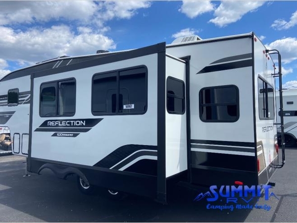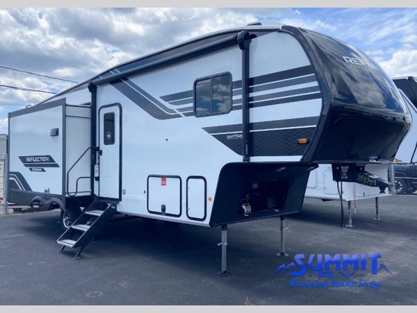 Each Reflection 100 Series fifth wheel by Grand Design is affordable and packed with luxury for unforgettable camping memories! The MorRyde CRE3000 suspension system and Goodyear Endurance tires will provide smooth towing from home to campground. And the solar package with a 180W solar panel, 60 Amp charge controller and 12V refrigerator will allow you to camp for longer periods of time and in more locations! A heated and enclosed underbelly with circulating heat is included in the Arctic 4-Seasons Protection Package, along with a double insulated roof and front cap, and thermofoil insulation under the holding tanks so you can camp all year long if you choose. You will appreciate having an on-demand water heater for hot showers after exploring, and the universal all-in-one docking station will let you monitor your RVs tanks levels and functions with ease. These models also include many luxurious interior features, such as premium Congoleum flooring, pleated shades, residential cabinetry, and matte black fixtures and hardware. Don't let the Reflection 100 Series fifth wheels pass you by!