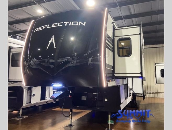 With any Reflection fifth wheel by Grand Design, you will have a solar panel for off-grid camping and a 60 amp charge controller and inverter prep, a Universal All-In-One docking station, unobstructed pass-through storage, and Goodyear Endurance tires. Each is constructed of gel coat exterior sidewalls, residential 5" truss rafters, walk-on roof decking, a fiberglass and radiant foil roof and front cap insulation plus laminated aluminum framed side walls, roof and end walls in slide rooms. Head inside to enjoy residential hardwood cabinet doors, premium Congoleum flooring, a spacious shower with a glass door, and many more comforts!