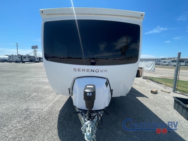 With any Serenova travel trailer by Grand Design, you will enjoy a smooth tow and at-home comforts wherever you decide to roam. There is a MORryde independent suspension plus MORryde shock, Goodyear Endurance tires, and Dexter tow assist with an anti-lock braking system and sway control for optimal handling. To help extend your camping season, there is an enclosed underbelly, a dedicated heat source with Thermafoil, heated dump valves plus thermostatically controlled 12V heating pads. Inside, you'll love the look of the imported Italian cabinetry, and there is a Klipsch whole home Bluetooth speaker so you can listen to your favorite tunes at the campground!