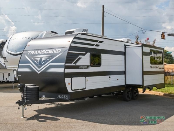 Elevate your camping experience with the Grand Design Transcend 245RLT Travel Trailer, designed for comfort, convenience, and unforgettable outdoor moments. Whether you're parked by the lake or deep in the woods, this dual-entry trailer offers a spacious interior and versatile features to make every trip memorable.