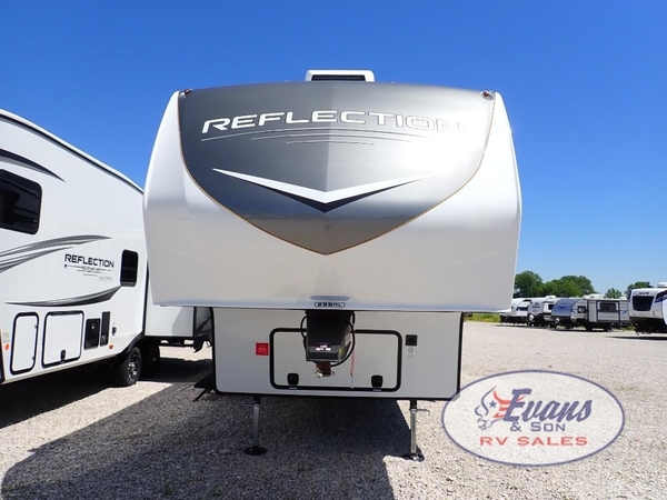 With any Reflection 150 Series fifth wheel by Grand Design, there is more available payload capacity and a broader range of half-ton trucks capable of towing this fifth wheel, and no slider hitch is needed thanks to the 90-degree turning radius which makes them short bed friendly and easier to tow. The mandatory Ultimate Power package provides a "One-Touch" automatic leveling system and a detachable power cord with LED light for easy setup, plus motion sensor pass-through lighting and entry lighting, and the Tire Linc TPMS will help you stay safe on the road. The interior offers residential luxury from the cabinetry and premium congoleum flooring, plus the booth dinette to the residential-style window treatment. Make your refined decision today!