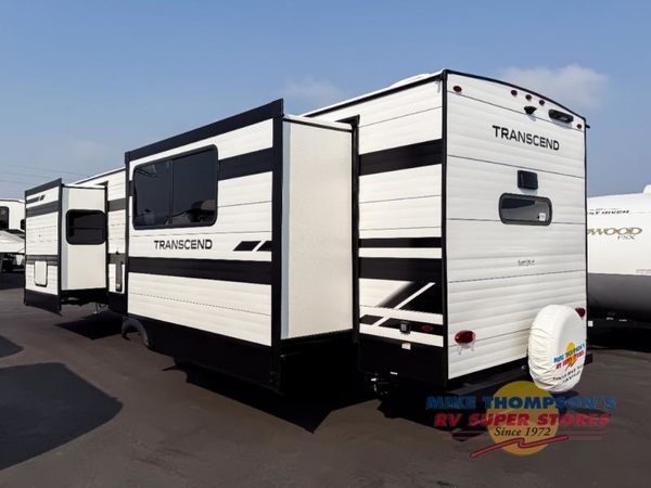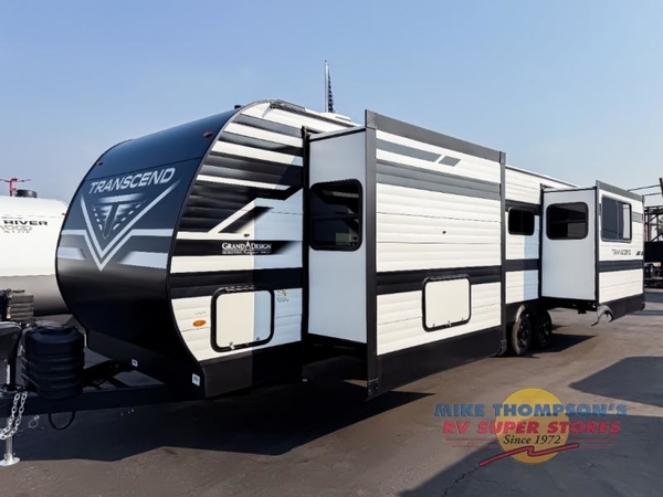With any Transcend travel trailer by Grand Design, you will enjoy upscale appointments and convenient amenities to make each camping experience one to remember! The Quad Seal technology, residential insulated walls, plus heated and enclosed underbelly with suspended tanks make these units solid and durable. There is a black automotive glass door outside, along with a Safe-T-Rail assist on the main entry door, backup camera prep, and a universal docking station. JBL interior and exterior speakers plus a JBL head unit will let you listen to your favorite tunes as you visit under the power awning with LED strip lights. Inside, you'll enjoy multiple outlets to keep your gadgets charged, thermoformed and seamless countertops, and a 6' 6" interior height so you won't feel closed in. The Solar Prep Package will allow you to enjoy off-grid capabilities with a 200W solar panel, which is wired for up to 600W, a 30 AMP Bluetooth solar controller, a 2000W inverter prep, and more!