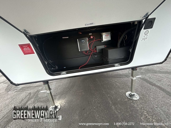 Mechanicals Two 30# LP Bottles Solar and Battery Disconnect Switches 180w or 370w Solar Panel (vbm) 60-Amp Solar Charge Controller Roof Quick Connect Plugs Inverter Prep 50-Amp Service Cord 15k AC 2nd AC Prep 35k High Capacity Furnace No Floor Duct Evenflow System Universal Docking Station 12v Thermostat Control Tank Heater Heated Utility Center Enclosed Gate Valves On Demand Hot Water Outdoor Shower Hot and Cold