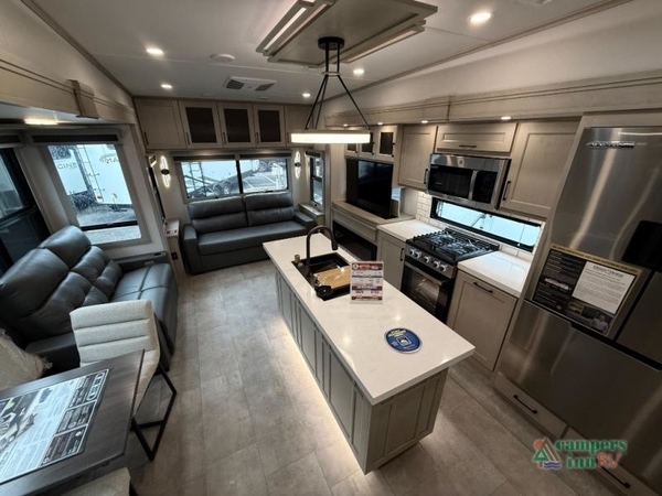 The Solitude 310GK offers true residential luxury, loaded with premium features for full-time RV living. From the spacious living area to the chef-inspired kitchen, this fifth wheel combines comfort and durability with cutting-edge amenitiesincluding three A/C units, 8,000 lb. axles, and generator prep for off-grid capability.