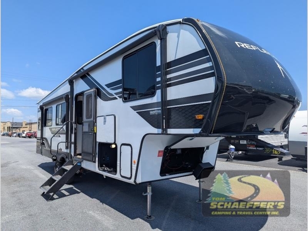 With any Reflection 150 Series fifth wheel by Grand Design, there is more available payload capacity and a broader range of half-ton trucks capable of towing this fifth wheel, and no slider hitch is needed thanks to the 90-degree turning radius which makes them short bed friendly and easier to tow. The mandatory Ultimate Power package provides a "One-Touch" automatic leveling system and a detachable power cord with LED light for easy setup, plus motion sensor pass-through lighting and entry lighting, and the Tire Linc TPMS will help you stay safe on the road. The interior offers residential luxury from the cabinetry and premium Congoleum flooring, to the booth dinette and residential-style window treatment. Make your refined decision today!