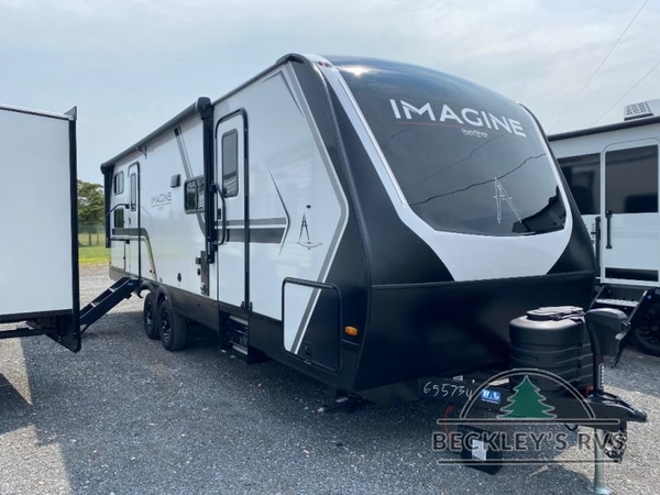 Where will you go with this Imagine travel trailer? The possibilities are endless! You can take your family on an exciting excursion because this trailer has enough sleeping space for everyone with a 60" x 80" queen bed in the private bedroom, a U-shaped dinette and tri-fold sofa in the main living area, and there is a set of 47" x 76" bunk beds with privacy curtains in the rear corner. You can come and go as you please with two entry doors, and the outdoor griddle and refrigerator will be fun to use when the weather is nice. The flip-up countertop extension will make it easier to prepare delicious home cooked meals and the shoe storage area helps to keep things neat and tidy.