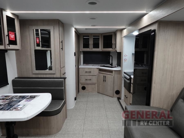 This Imagine XLS travel trailer has theater seating and a booth dinette that you can use any time you need a little break from the outdoors. If you want to come in and grab a coffee, put together a puzzle, or work on your itinerary for the week, just put up your feet and relax. You could even switch on the LED HDTV if you want a little entertainment. The front queen-size bed has a privacy curtain that you can draw to create a semi-private bedroom, and in the back of the trailer you will find the rest of your amenities, like the kitchen and the bathroom. The large slide makes it easy to enjoy spending your time indoors, but if you do want to get back outside, you can sit underneath the 18' electric awning for some shade.