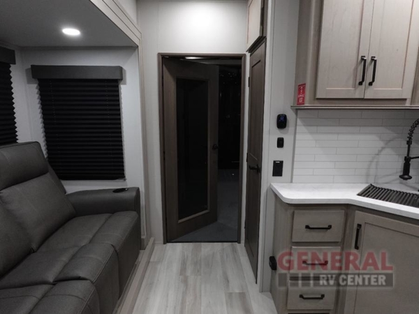 Are you looking for adventure and fun? The Momentum G-Class toy hauler by Grand Design will help you find it! You can explore during any season you choose with the Insulation Package that includes a heated and enclosed underbelly with suspended tanks, a high-capacity furnace, a moisture barrier floor enclosure, and cabinet-mounted heat ducts. Each model includes a 30-gallon fuel station with an interior and exterior gauge, a dovetail rear rend, and 2,500-LB tie-downs anchored into the chassis. Throughout the Momentum G-Class interior, you'll enjoy many comfortable features like large panoramic windows, a shower skylight, USB chargers in the bedroom, and residential cabinetry.