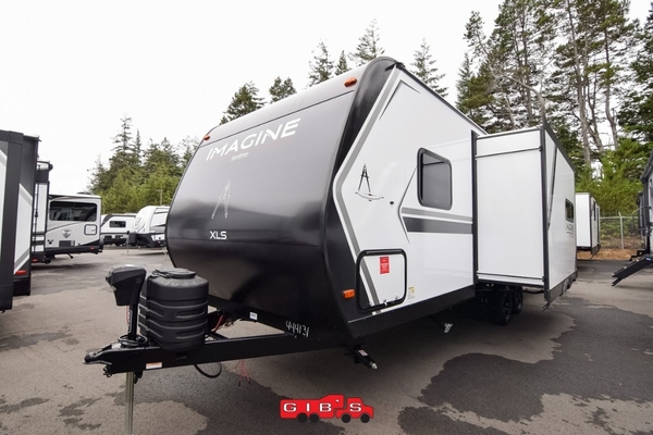 Let your imagination run wild with the possibilities that the Grand Design Imagine XLS travel trailer can provide! The Imagine XLS has been built with oversized tank capacities, an extra-large 2" fresh water drain valve, a ducted A/C system, a power tongue jack, and a heated and enclosed underbelly with suspended tanks. There is a designated heat duct to the subfloor and a residential ductless heating system throughout. For outdoor adventures, the electric awning with LED lights will enable you to stay protected, and the Tuff-Ply pass-thru flooring will withstand your many adventures. You will also love the XLS Solar Package that comes with a 200W roof mounted solar panel, a 40 Amp charge controller, a 12V 10 cu. ft. refrigerator, and roof mounted quick connect plugs!