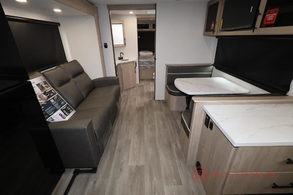 Treat yourself to a weekend of fun in this Imagine XLS travel trailer! Whether it's just you and your spouse, or you've chosen to bring along a group of friends, this trailer will meet the need. The front bedroom can sleep two people on the walk-around queen-size bed. The bedroom is quite functional because it not only contains the second exterior entry door, but it also has a private entrance into the walk-through bathroom since it is located on the other side of the bathroom. The booth dinette is functional too because it can transform from a dining location into a sleeping location, and the theater seating is directly across from the LED TV for easy viewing.