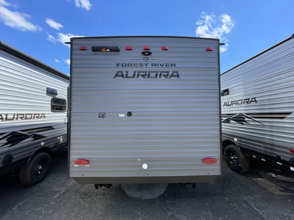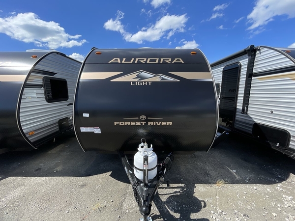 Comfortability, usability, and quality is what you will find in each one of these Forest River Aurora Light travel trailers! They are designed with a superior build and packed full with industry leading, functional, and distinctive standard features. The diamond plate rock guard will protect your unit from road debris and the nitrogen filled radial tires, which keep their pressure longer, offer better fuel economy. You will also find upgraded JBL Elite exterior speaker outside, an electric awning with multicolor lights and remote, plus flush mount baggage doors for easy packing. The interiors are beautifully designed with matte black kitchen and bath faucets, black nightshades in the living room, and GE kitchen appliances!