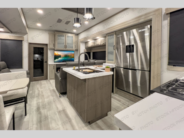 With any Momentum M-Class toy hauler by Grand Design, you will enjoy luxury at every turn! They have been constructed to a superior standard with a thermal roof design, triple insulated main floor and garage floor, and a Rail-Tite underbelly seal that will allow you to camp in all elements. Each model also features an 8' 5" wide body chassis with a wide rail design, no wheel wheels, and a dovetail entry for easier loading. The Stealth A/C system provides maximum cooling power, and the CRE3000 suspension system means you can enjoy a smooth tow each time. You will love the luxurious interior with a professional grade stainless steel cooktop, interior color changing LED accent lighting, a fiberglass shower with a glass door, and solid surface countertops.