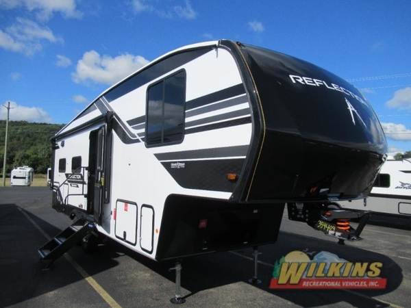 With any Reflection 150 Series fifth wheel by Grand Design, there is more available payload capacity and a broader range of half-ton trucks capable of towing this fifth wheel, and no slider hitch is needed thanks to the 90-degree turning radius which makes them short bed friendly and easier to tow. The mandatory Ultimate Power package provides a "One-Touch" automatic leveling system and a detachable power cord with LED light for easy setup, plus motion sensor pass-through lighting and entry lighting, and the Tire Linc TPMS will help you stay safe on the road. The interior offers residential luxury from the cabinetry and premium Congoleum flooring, to the booth dinette and residential-style window treatment. Make your refined decision today!