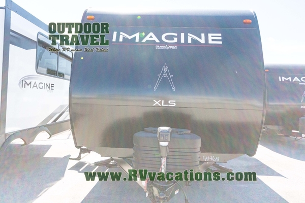 Let your imagination run wild with the possibilities that the Grand Design Imagine XLS travel trailer can provide! The Imagine XLS has been built with oversized tank capacities, an extra-large 2" fresh water drain valve, a ducted A/C system, a power tongue jack, and a heated and enclosed underbelly with suspended tanks. There is a designated heat duct to the subfloor and a residential ductless heating system throughout. For outdoor adventures, the electric awning with LED lights will enable you to stay protected, and the Tuff-Ply pass-thru flooring will withstand your many adventures. You will also love the XLS Solar Package that comes with a 200W roof mounted solar panel, a 40 Amp charge controller, a 12V 10 cu. ft. refrigerator, and roof mounted quick connect plugs!