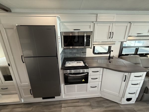 Thanks to the JRide® ride and handling package, youll enjoy a relaxing drive from start to finish. With features like a Bilstein® steering stabilizer and SACHS shocks, the ride is quiet, stable and smoothno matter where the road takes you. Outside, frameless windows give the Alante a sleek, automotive look while helping protect window seals from the elements. The one-piece fiberglass roof wraps around the sides of the coach, eliminating problem seams and helping prevent leaksplus, its more durable than rubber and wont leave unsightly streaks down the side of the coach.