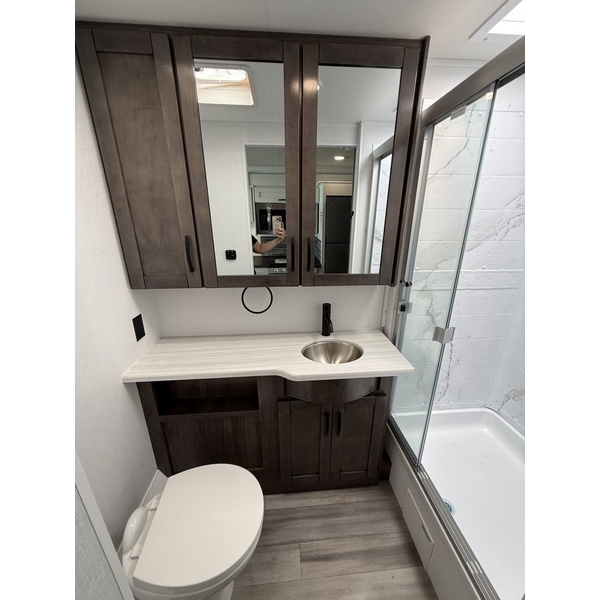 Are you worried about tripping a breaker while using multiple appliances? No problem here. The Alante features two 13,500 BTU A/C units with a smart power management system. It automatically cycles power between appliances so everything runs smoothly without a hitch. Want to stay connected? The Winegard® Connect 2.0 system makes it easy to grab and boost Wi-Fi signals at the campground to work, stream or check in with friends and family.