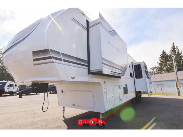 Any Grand Design Influence fifth wheel features five-sided aluminum cage construction with a walk-on roof and a fully enclosed underbelly with heated tanks and storage for all weather camping. For peace of mind, the MORryde CRE3000 Suspension system will provide safe and smooth towing, and the 101" widebody construction offers all the room you need and that is before multiple slides are fully engaged. You will appreciate the Keyed-Alike locks, slam-latch baggage doors with magnetic door catches, exterior security light, and SolidStep entry steps. On the inside, Congoleum flooring, premium roller shades for privacy, a hallway handrail for safety, and nightstands with USB ports to keep all of your electronics fully charged. You will also love the On Demand tankless water heater when showering, plus the added heat and ambiance from an electric fireplace, and so much more!