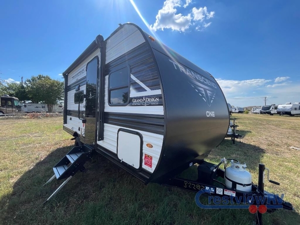With any Transcend One travel trailer by Grand Design, you will enjoy lightweight towing thanks to their single-axle. There are many interior comforts to make camping easier than ever, such as recessed lighting, residential countertops, and a 6' 6" interior height. Each model is constructed with a heated and enclosed underbelly with suspended tanks, a moisture barrier floor enclosure, and Thermofoil over the roof and front cap for added protection. And a JBL sound system will let you listen to tunes as you visit under the power awning with a Fusion light!