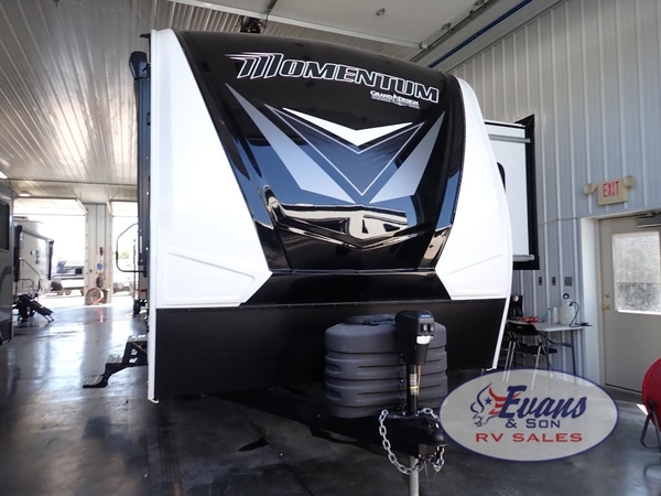 Are you looking for adventure and fun? The Momentum G-Class toy hauler by Grand Design will help you find it! You can explore during any season you choose with the Insulation Package that includes a heated and enclosed underbelly with suspended tanks, a high-capacity furnace, a moisture barrier floor enclosure, and cabinet-mounted heat ducts. Each model includes a fuel station with an interior and exterior gauge, a dovetail rear rend, and 2,500-LB tie-downs anchored into the chassis. Throughout the Momentum G-Class interior, you'll enjoy many comfortable features like large panoramic windows, a shower skylight, USB chargers in the bedroom, and residential cabinetry.