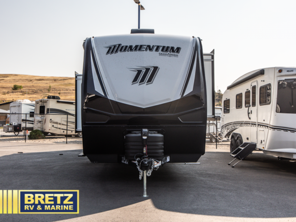 Are you looking for adventure and fun? The Momentum G-Class toy hauler by Grand Design will help you find it! You can explore during any season you choose with the Insulation Package that includes a heated and enclosed underbelly with suspended tanks, a high-capacity furnace, a moisture barrier floor enclosure, and cabinet-mounted heat ducts. Each model includes a fuel station with an interior and exterior gauge, a dovetail rear rend, and 2,500-LB tie-downs anchored into the chassis. Throughout the Momentum G-Class interior, you'll enjoy many comfortable features like large panoramic windows, a shower skylight, USB chargers in the bedroom, and residential cabinetry.