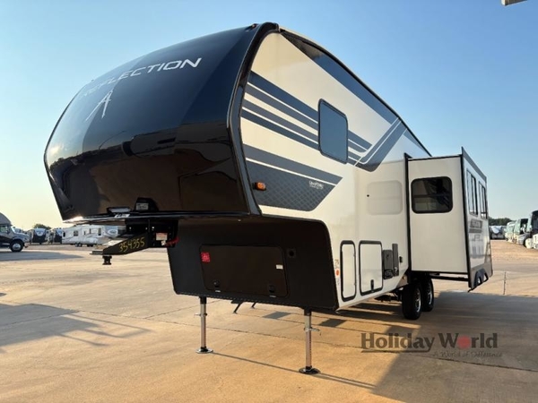 Each Reflection 100 Series fifth wheel by Grand Design is affordable and packed with luxury for unforgettable camping memories! The MorRyde CRE3000 suspension system and Goodyear Endurance tires will provide smooth towing from home to campground. And the solar package with a 180W solar panel, 60 Amp charge controller and 12V refrigerator will allow you to camp for longer periods of time and in more locations! A heated and enclosed underbelly with circulating heat is included in the Arctic 4-Seasons Protection Package, along with a double insulated roof and front cap, and thermofoil insulation under the holding tanks so you can camp all year long if you choose. You will appreciate having an on-demand water heater for hot showers after exploring, and the universal all-in-one docking station will let you monitor your RVs tanks levels and functions with ease. These models also include many luxurious interior features, such as premium Congoleum flooring, pleated shades, residential cabinetry, and matte black fixtures and hardware. Don't let the Reflection 100 Series fifth wheels pass you by!