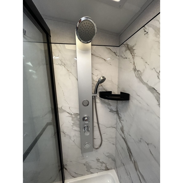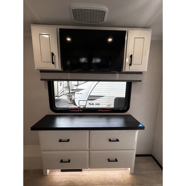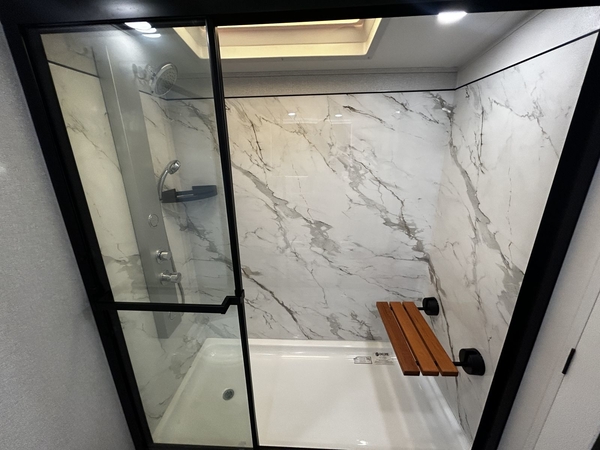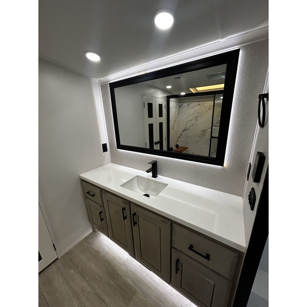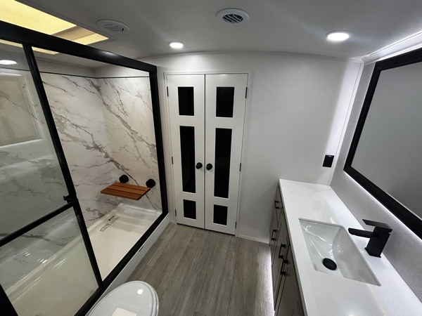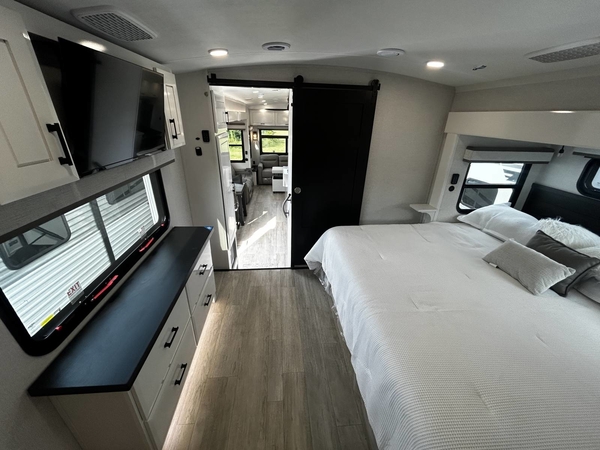 Pinnacle also features the AquaLuxe packagea premium setup that includes a high-capacity tankless water heater, (3) 40-lb. propane bottles for extended use, and the NuvoH2O filtration system. Together, they deliver instant hot water, longer off-grid capability and consistently cleaner, better-tasting water throughout the coach.