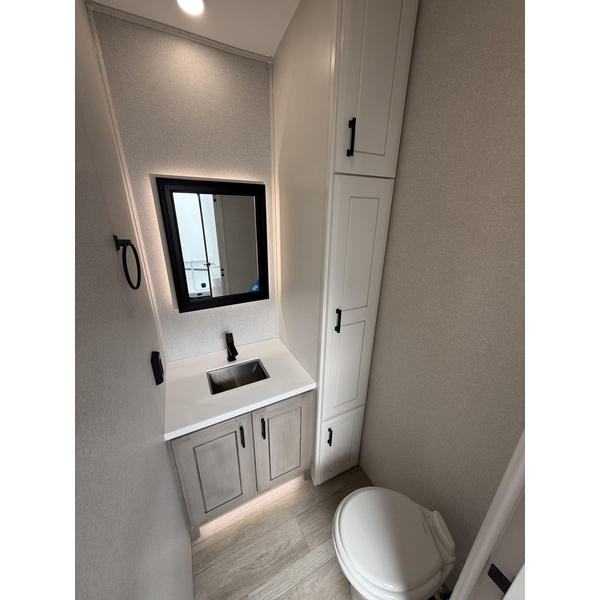 Pinnacle also features the AquaLuxe packagea premium setup that includes a high-capacity tankless water heater, (3) 40-lb. propane bottles for extended use, and the NuvoH2O filtration system. Together, they deliver instant hot water, longer off-grid capability and consistently cleaner, better-tasting water throughout the coach.