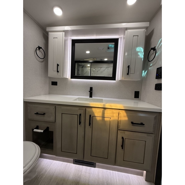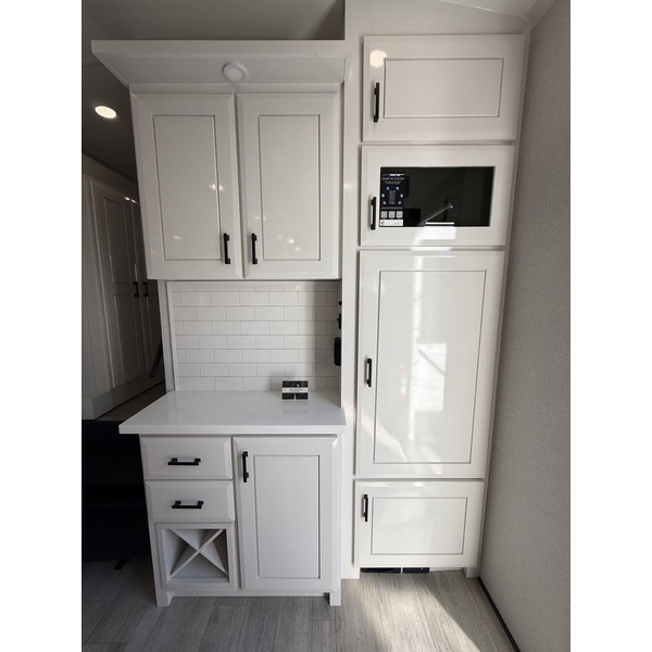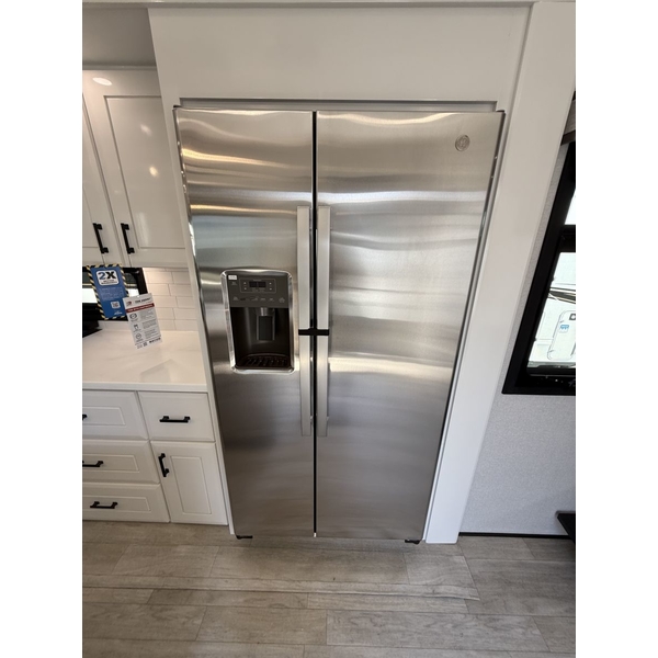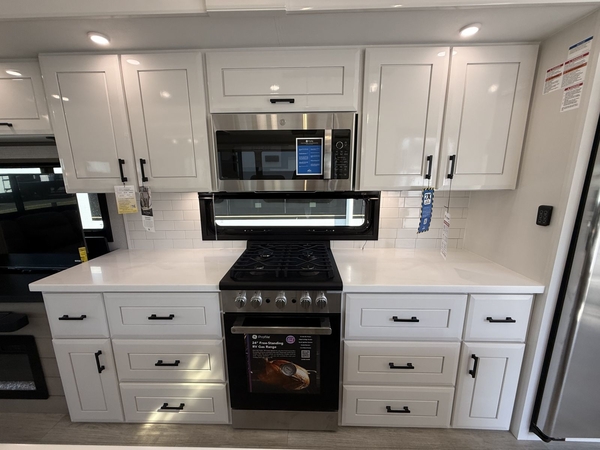 Step inside and experience the Jayco difference. From handcrafted solid hardwood maple cabinetry to sleek solid-surface countertops, every detail reflects intentional design and superior build quality. GEs premium kitchen suite includes a 21 cu. ft. residential refrigerator, a 30 in. convection microwave with built-in air fryer, and a 24 in. high-output rangealong with an available built-in dishwasher and extended bar top for effortless entertaining.
