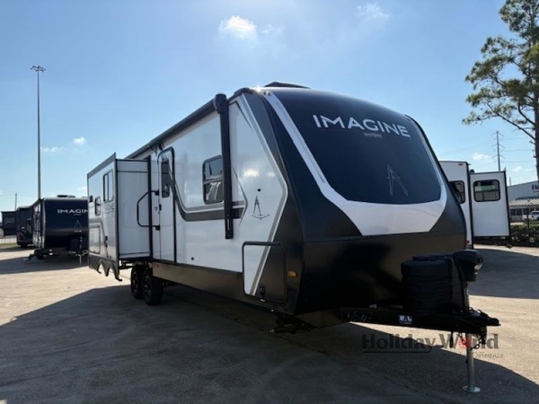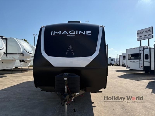 Just imagine leaving the world behind and secluding yourself away with your favorite people in your Grand Design Imagine travel trailer! The Imagine has been designed to enjoy extended season camping and includes a high-capacity furnace, a heated and enclosed underbelly with suspended tanks, a designated heat duct to the subfloor, and a high-density roof insulation with attic vent. You'll have maximum head room on the interior with 81" radius ceilings, and large panoramic windows to let in natural lighting. The exclusive drop-frame pass-through storage compartment is going to allow you to bring along lots of equipment, and the universal docking station is an all-in-one location for utilities and hook-ups. You'll also have oversized tank capacities so that you can fill and empty your tanks less often.
