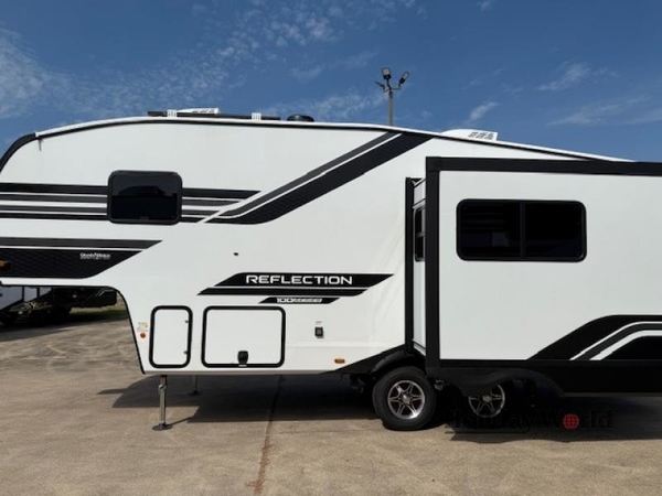 Each Reflection 100 Series fifth wheel by Grand Design is affordable and packed with luxury for unforgettable camping memories! The MorRyde CRE3000 suspension system and Goodyear Endurance tires will provide smooth towing from home to campground. And the solar package with a 180W solar panel, 60 Amp charge controller and 12V refrigerator will allow you to camp for longer periods of time and in more locations! A heated and enclosed underbelly with circulating heat is included in the Arctic 4-Seasons Protection Package, along with a double insulated roof and front cap, and thermofoil insulation under the holding tanks so you can camp all year long if you choose. You will appreciate having an on-demand water heater for hot showers after exploring, and the universal all-in-one docking station will let you monitor your RVs tanks levels and functions with ease. These models also include many luxurious interior features, such as premium Congoleum flooring, pleated shades, residential cabinetry, and matte black fixtures and hardware. Don't let the Reflection 100 Series fifth wheels pass you by!