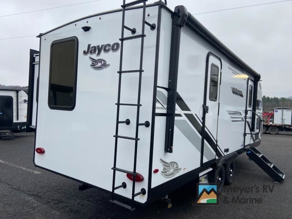 With any Jay Feather travel trailer by Jayco, you will enjoy lightweight towing, convenient exterior amenities, and at-home comforts inside! The Overlander 1 Solar Package included within the Jay Sport Package comes with a 200W solar panel and a 30-amp digital controller so you can enjoy some off-grid camping. There is also a modern graphics package, Solid fold-down step with aluminum tread steps on the main entry doorstep, and Climate Shield 0 -100° F tested weather insulation package that will allow you to camp in various types of climates. The Customer Value Package will make time outdoors easier than ever with a power tongue jack and Automotive-style aluminum rims, plus radial tires with self-adjusting electric brakes. More exterior features include a Keyed-Alike doors, a Magnum Truss roof system, and the list goes on! And we haven't even touched on the interior comforts, like the seamless countertops and Residential vinyl flooring throughout, decorative kitchen backsplash, handcrafted hardwood door/drawer fronts, and multiple USB charging ports to keep you going!