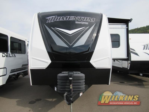 Are you looking for adventure and fun? The Momentum G-Class toy hauler by Grand Design will help you find it! You can explore during any season you choose with the Insulation Package that includes a heated and enclosed underbelly with suspended tanks, a high-capacity furnace, a moisture barrier floor enclosure, and cabinet-mounted heat ducts. Each model includes a fuel station with an interior and exterior gauge, a dovetail rear rend, and 2,500-LB tie-downs anchored into the chassis. Throughout the Momentum G-Class interior, you'll enjoy many comfortable features like large panoramic windows, a shower skylight, USB chargers in the bedroom, and residential cabinetry.