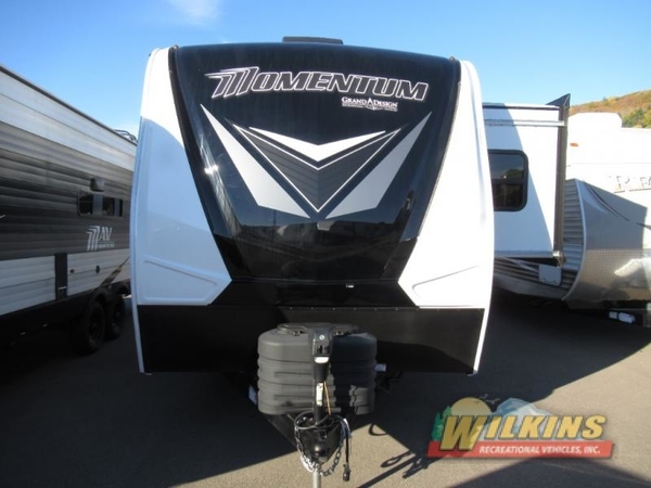 Are you looking for adventure and fun? The Momentum G-Class toy hauler by Grand Design will help you find it! You can explore during any season you choose with the Insulation Package that includes a heated and enclosed underbelly with suspended tanks, a high-capacity furnace, a moisture barrier floor enclosure, and cabinet-mounted heat ducts. Each model includes a fuel station with an interior and exterior gauge, a dovetail rear rend, and 2,500-LB tie-downs anchored into the chassis. Throughout the Momentum G-Class interior, you'll enjoy many comfortable features like large panoramic windows, a shower skylight, USB chargers in the bedroom, and residential cabinetry.