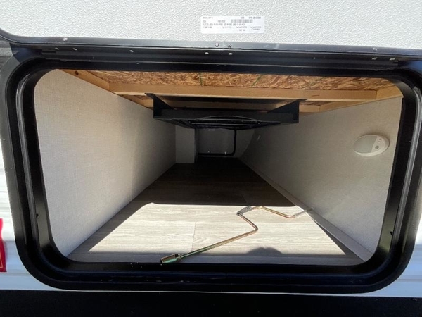 This fantastic travel trailer is designed to provide the ultimate in comfort, convenience, and adventure! The double-size bunk beds are perfect for kids, providing ample sleeping space and an under-bed storage space for all your belongings. The full bathroom features a linen closet, providing convenient storage for towels and toiletries. In the kitchen area, the U-shaped dinette is a great spot for creating memories that will last a lifetime, the refrigerator keeps your food and drinks fresh, while the microwave provides a quick and easy way to prepare meals. And for major convenience, the pull-out trash makes cleaning up a simple task. Take a nap in the comfortable front queen bed, which is a serene retreat, providing a comfortable spot to rest and relax. Jump to the exterior in a comfortable way with the double entry/exit door providing added convenience and flexibility, while the exterior awning provides shade and protection from the elements. The pass-through storage offers ample space for your outdoor gear and equipment.