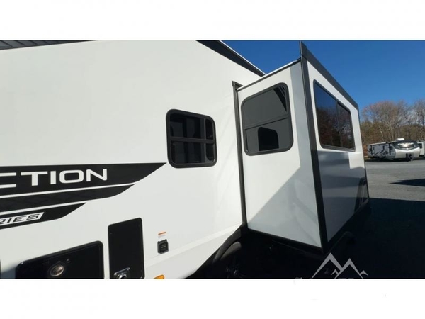 You will love this fifth wheel featuring a single slide for added interior living space and all the comforts and conveniences it provides you while you travel. The slide features a 78" theater seat plus there is a breakfast nook for more seating. Both can easily view the entertainment center with 40" TV. A rear kitchen indoors provides everything you need to create meals like home while on the road, and if you want to spend as much time outside as possible, then the outdoor griddle will certainly accommodate you for meals. Up front, a cozy private bedroom with queen bed, wardrobe, and overhead cabinets. Right next door, you will find a large walk-in shower, as well as a toilet, and a vanity with sink and linen cabinet for your towels and toiletries. You will also love the full unobstructed pass-through compartment for all of your gear, plus so much more!