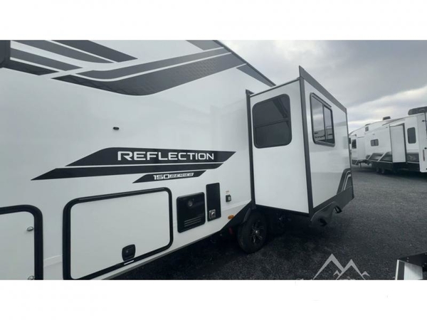 With any Reflection 150 Series fifth wheel by Grand Design, there is more available payload capacity and a broader range of half-ton trucks capable of towing this fifth wheel, and no slider hitch is needed thanks to the 90-degree turning radius which makes them short bed friendly and easier to tow. The mandatory Ultimate Power package provides a "One-Touch" automatic leveling system and a detachable power cord with LED light for easy setup, plus motion sensor pass-through lighting and entry lighting, and the Tire Linc TPMS will help you stay safe on the road. The interior offers residential cabinetry and premium Congoleum flooring, to the booth dinette and residential-style window treatment. Make your refined decision today!