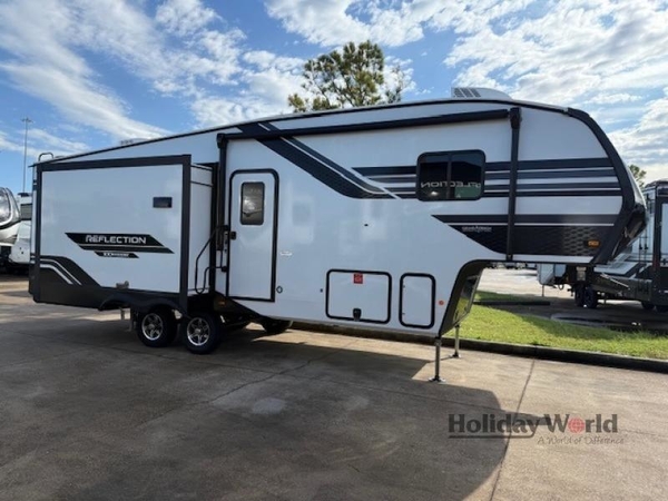 Each Reflection 100 Series fifth wheel by Grand Design is affordable and packed with luxury for unforgettable camping memories! The MorRyde CRE3000 suspension system and Goodyear Endurance tires will provide smooth towing from home to campground. And the solar package with a 180W solar panel, 60 Amp charge controller and 12V refrigerator will allow you to camp for longer periods of time and in more locations! A heated and enclosed underbelly with circulating heat is included in the Arctic 4-Seasons Protection Package, along with a double insulated roof and front cap, and thermofoil insulation under the holding tanks so you can camp all year long if you choose. You will appreciate having an on-demand water heater for hot showers after exploring, and the universal all-in-one docking station will let you monitor your RVs tanks levels and functions with ease. These models also include many luxurious interior features, such as premium Congoleum flooring, pleated shades, residential cabinetry, and matte black fixtures and hardware. Don't let the Reflection 100 Series fifth wheels pass you by!