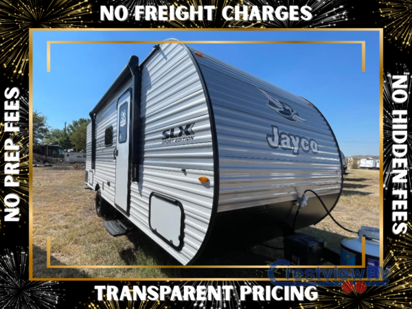 The Jayco Jay Flight SLX travel trailer is quite easy to own because it is lightweight for an easier towing experience. Built on a fully integrated A-frame with galvanized-steel, impact-resistant wheel wells, the Jay Flight SLX has quality at its very foundation. That quality continues on to the electric self-adjusting brakes, easy-lube hubs, Magnum Truss roof system, and LP quick connect. Some of what the mandatory Customer Value Package includes is backup camera prep, Keyed-Alike entry and baggage doors, and an on-demand tankless water heater.