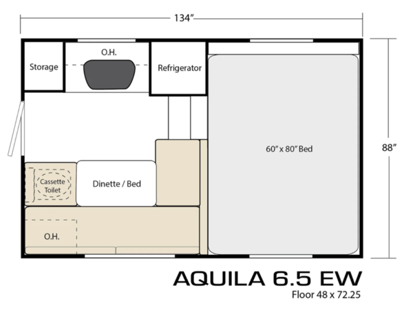 Adventure is easier than ever with the new 2026 Soaring Eagle Aquila 6.5. Built for todays short-bed trucks, this ultra-light hard-side camper combines strength, simplicity, and comfort in a compact design. Constructed with welded aluminum framing and composite materials, its built to last while staying under 1,000 pounds.