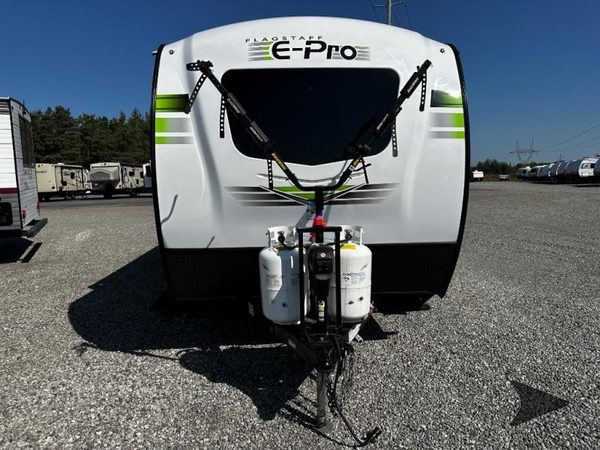Forest River has custom designed each one of these Flagstaff E-Pro travel trailers and toy haulers to be towed by your fuel-efficient, smaller SUV! They may be light in weight, but they are heavy in features and options. Some of these features include an AM/FM Bluetooth stereo with USB ports to play your favorite tunes, a 190W roof-mount solar panel, and a Shower Miser water saver on most models. Their six-sided aluminum cage construction, frame-mounted stabilizer jacks, and vacuum laminated roof and walls will hold up through every adventure you throw their way. You even get a Sport Tire & Wheel Package which includes 15" Mud Rover radial tires and a lift kit. Come see all that these models have to offer!
