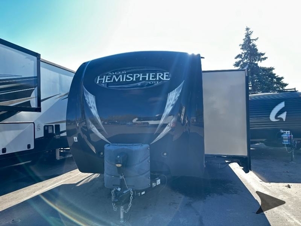 A front kitchen, and double slides are just a few of the features that you will love on the Salem Hemisphere Lite 302FK travel trailer by Forest River.