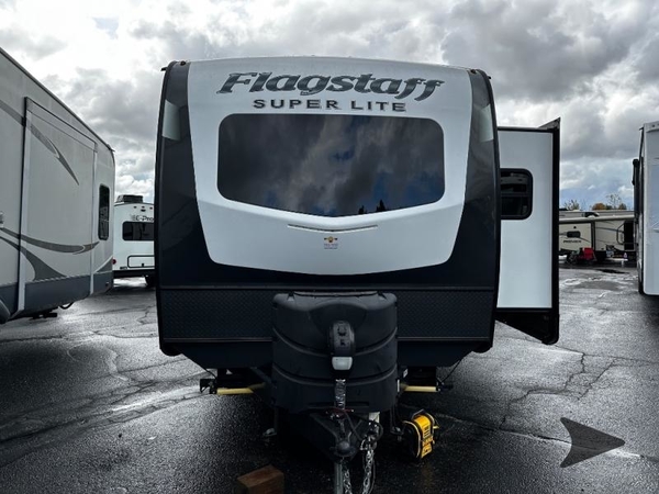 With any Flagstaff Super Lite travel trailer by Forest River you will experience a lightweight RV that is built with a 6 sided aluminum cage construction, vacuum laminated one-piece roof and walls, laminated fiberglass sidewalls, and an enclosed underbelly for four seasons of camping. The interior is just as impressive with a Shower Miser water saver system, hardwood cabinet doors and drawers, undermount double bowl kitchen sink with a residential style faucet, ceiling LED 12 volt interior lighting, and a monitor panel switch station with a OneControl app. Make your selection today!