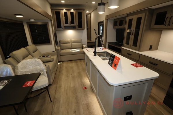 With any Reflection fifth wheel by Grand Design, you will have a solar panel for off-grid camping and a 60 amp charge controller and inverter prep, a Universal All-In-One docking station, unobstructed pass-through storage, and Goodyear Endurance tires. Each is constructed of gel coat exterior sidewalls, residential 5" truss rafters, walk-on roof decking, a fiberglass and radiant foil roof and front cap insulation plus laminated aluminum framed side walls, roof and end walls in slide rooms. Head inside to enjoy residential hardwood cabinet doors, premium Congoleum flooring, a spacious shower with a glass door, and many more comforts!