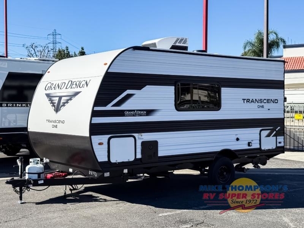 With any Transcend One travel trailer by Grand Design, you will enjoy lightweight towing thanks to their single-axle. There are many interior comforts to make camping easier than ever, such as recessed lighting, residential countertops, and a 6' 6" interior height. Each model is constructed with a heated and enclosed underbelly with suspended tanks, a moisture barrier floor enclosure, and Thermofoil over the roof and front cap for added protection. And a JBL sound system will let you listen to tunes as you visit under the power awning with a Fusion light!
