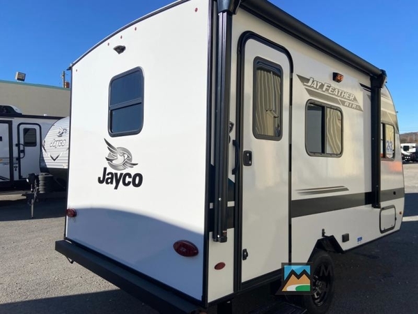 The Jay Feather Air SL travel trailer by Jayco is affordable, convenient, and lightweight for an easier tow! A Magnum Truss roof system and fully integrated A-frame provide a strong foundation to the trailer, plus there are galvanized-steel, impact resistant wheel wells for added protection. Some of the exterior conveniences you'll find include a front tongue jack and stabilizer jacks, roof mount solar prep, an exterior porch light, and G20 dark tinted privacy windows. Head inside to enjoy solid hardwood cabinet doors, residential-style kitchen countertops, a marine-grade toilet with foot flush, and vinyl flooring throughout that will be easy to keep clean. This super lite travel trailer is the perfect choice for rookie RVers and seasoned campers alike!