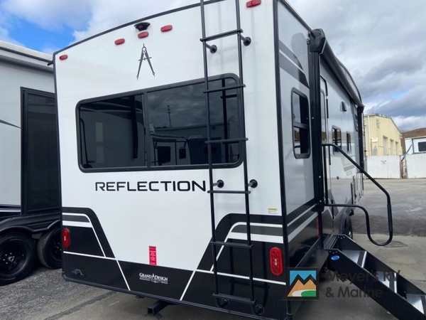 With any Reflection 150 Series fifth wheel by Grand Design, there is more available payload capacity and a broader range of half-ton trucks capable of towing this fifth wheel, and no slider hitch is needed thanks to the 90-degree turning radius which makes them short bed friendly and easier to tow. The mandatory Ultimate Power package provides a "One-Touch" automatic leveling system and a detachable power cord with LED light for easy setup, plus motion sensor pass-through lighting and entry lighting, and the Tire Linc TPMS will help you stay safe on the road. The interior offers residential luxury from the cabinetry and premium Congoleum flooring, to the booth dinette and residential-style window treatment. Make your refined decision today!