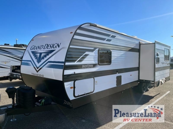 With any Transcend travel trailer by Grand Design, you will enjoy upscale appointments and convenient amenities to make each camping experience one to remember! The Quad Seal technology, residential insulated walls, plus heated and enclosed underbelly with suspended tanks make these units solid and durable. There is a black automotive glass door outside, along with a Safe-T-Rail assist on the main entry door, backup camera prep, and a universal docking station. JBL interior and exterior speakers plus a JBL head unit will let you listen to your favorite tunes as you visit under the power awning with LED strip lights. Inside, you'll enjoy multiple outlets to keep your gadgets charged, thermoformed and seamless countertops, and a 6' 6" interior height so you won't feel closed in. The Solar Prep Package will allow you to enjoy off-grid capabilities with a 200W solar panel, which is wired for up to 600W, a 30 AMP Bluetooth solar controller, a 2000W inverter prep, and more!