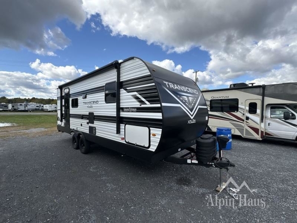 The customer-focused, quality-built Transcend Xplor travel trailers by Grand Design are your ticket to fun and adventure. You will appreciate the power tongue jack when it comes time to set up, as well as the all-in-one utility center and the detachable power cord with an LED light. These models include many outlets throughout, USB ports to charge your gadgets, and a JBL exterior speaker to listen to your favorite tunes. The interior of the Transcend Xplor will have you feeling right at home with upgraded residential furniture, residential countertops, residential cabinet doors, and the list goes on!